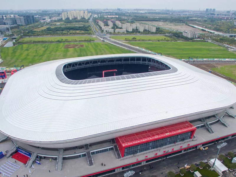 La parte superior generalmente está cubierta con láminas livianas de metal o materiales de membrana translúcida, lo que no solo garantiza la estabilidad de la estructura, sino que también tienen en cuenta los requisitos de la estética e iluminación. A través de tecnologías como estructuras de cuadrícula y armaduras, logra un diseño de espacio sin columnas de gran amplio columnas, lo que permite un diseño flexible dentro del lugar y proporcionando una vista abierta y sin obstrucciones para la audiencia.